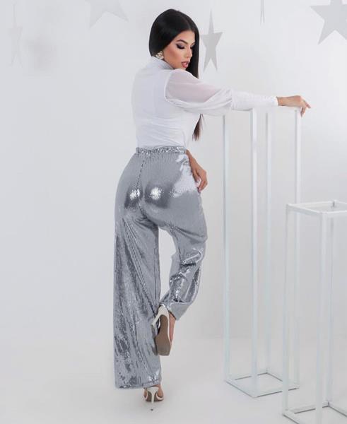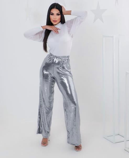Calça Pantalona Paetê - Prata